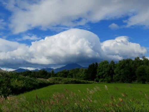 台風10号接近の影響でニセコは午前中から強風が吹き荒れました。 お隣の真狩村では最大瞬間風速26mが観測され、ニセコアンヌプリの上に巨大な雲の塊が載っています。 晴れ間が出ていたので散歩に出かけましたが一天にわかにかき曇り土砂降りに 雨はすぐ…