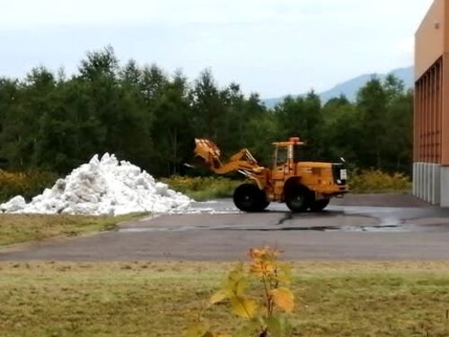 ブログ用に撮影したけど使わなかった写真たちです。 JAようていの雪利用米穀貯蔵庫で、役目を終えた雪を運び出していました。(9月6日) 3月頃に周囲の雪を庫内に運び込み夏まで5℃程度の低温で米を保存していますが、雪が溶けずにまだこんなに残っている…