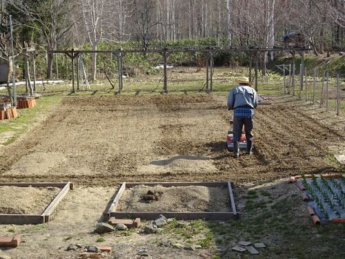 今年の連休の天気は低温+雨(所によっては雪)が続く予報で、どこにも出掛けず家にいるほうが安全という事らしいです。 畑に苦土石灰を撒布し耕運機の初運転をしました。 2週間後には米ぬかを撒布してもう一度耕運機をかける予定です。 そろそろ苗作りも始…