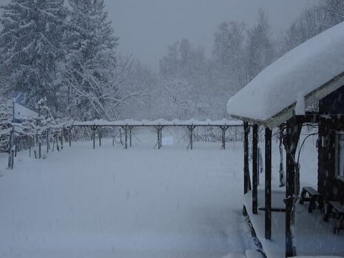 昨夜から降り出した雪 今もしんしんと降っています。 数日前に一時畑の土が見えていましたが、これが根雪となりそうです。