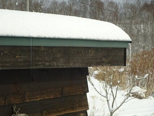 まだ根雪にはならないと思いますが、冬の始まりです。 湿雪のため枯れ木に花が咲く時期でもあります。 リンゴの木も気を付けて時々除雪しないと雪の重みで枝が折れることがあります。